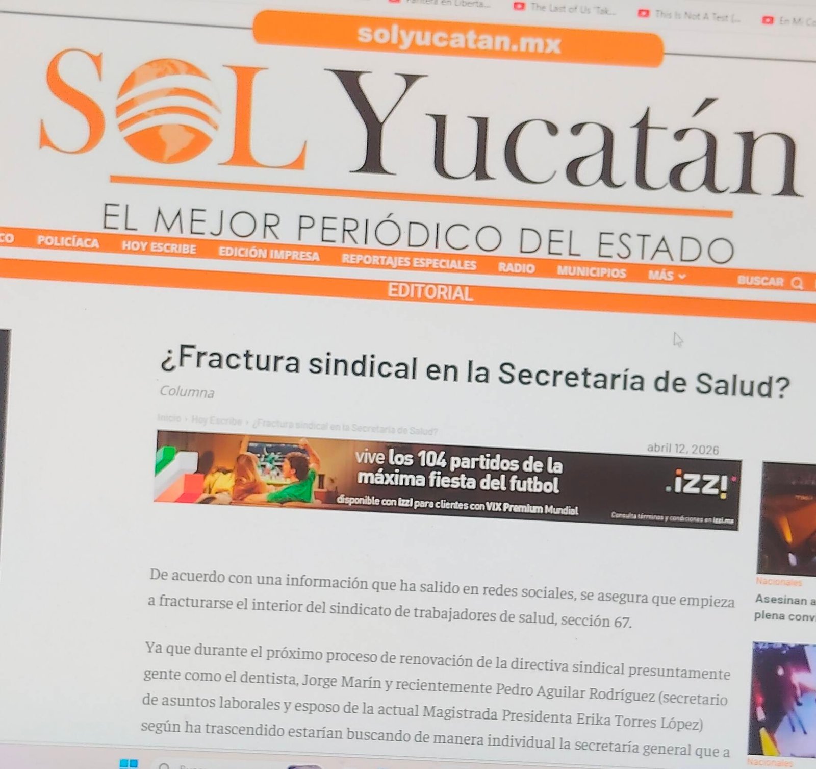 Lo curioso del caso es que dicho medio de comunicación menciona el título, pero de manera equivocada Fractura Sindical en la Secretaría de Salud, cuando el tema que abordamos fue a nivel sindical, no secretaría.