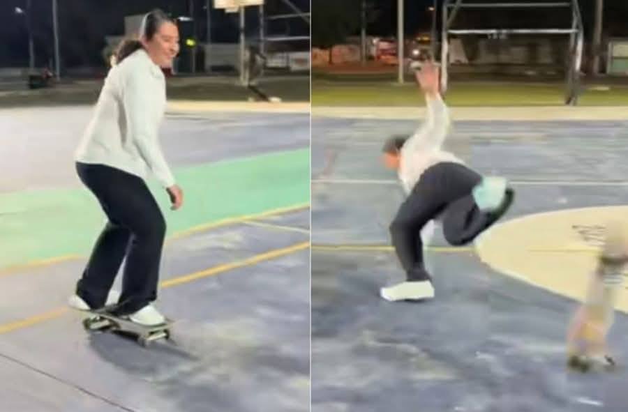 Ahora la alcaldesa de Umán, Kenia Walldina protagoniza un desafortunado accidente con una patineta.
